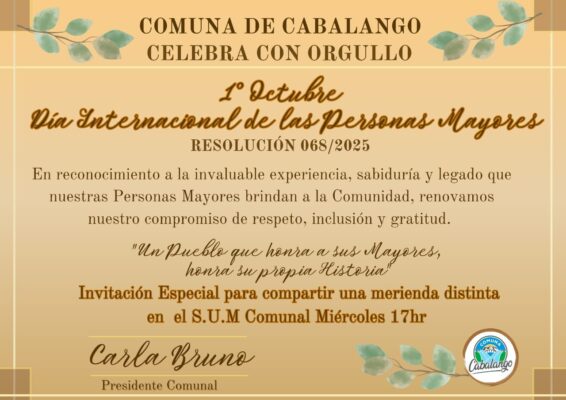 Cabalango celebra a sus Personas Mayores-1 de Octubre, 17 hs-S.U.M. Comunal
