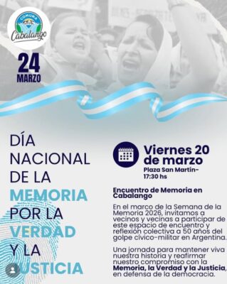 En el marco de la Semana de la Memoria 2026, la Comuna de Cabalango invita a vecinos y vecinas a participar del: