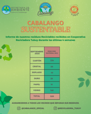 Seguimos avanzando en nuestro compromiso con el cuidado del ambiente. Durante las últimas semanas, la Cooperativa Recicladora Tukuy recibió los materiales reciclables que vecinos y vecinas de Cabalango separan día a día desde sus hogares.