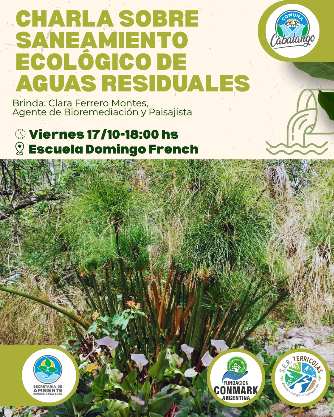 Te invitamos a participar de esta interesante charla brindada por Clara Ferrero Montes, Agente de Bioremediación y Paisajista, donde abordaremos distintas estrategias ecológicas para el tratamiento y saneamiento del agua, promoviendo el cuidado del ambiente y la sostenibilidad.