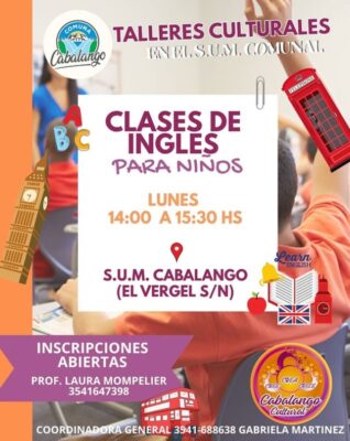 La Comuna de Cabalango informa que se encuentran abiertas las inscripciones para el Taller de Inglés destinado a niños.