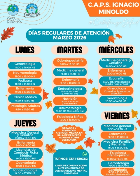 MARZO-C.A.P.S. Ignacio Minoldo-Días regulares de atención