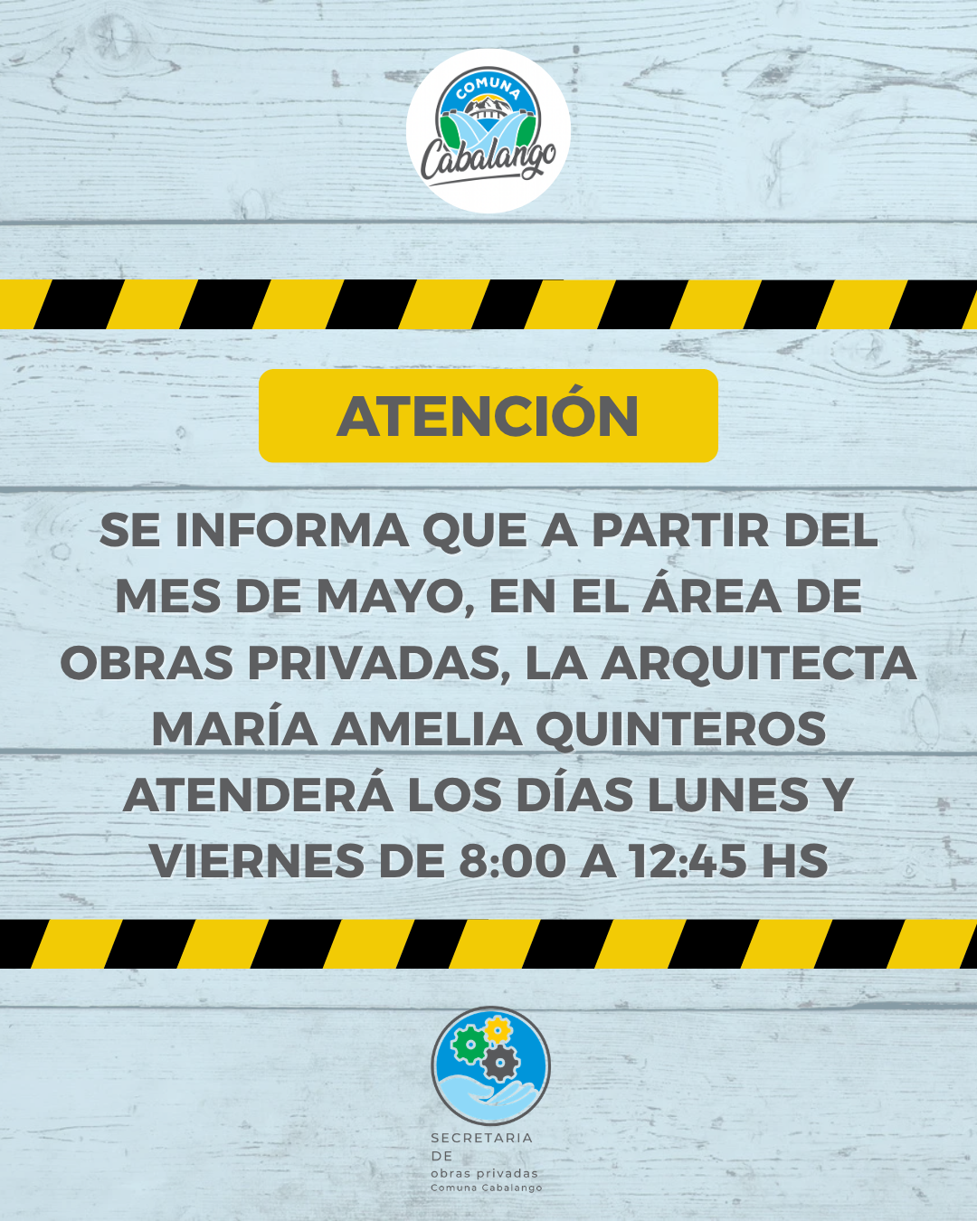 Se informa que a partir del mes de mayo, en el área de Obras Privadas, la arquitecta María Amelia Quinteros atenderá: