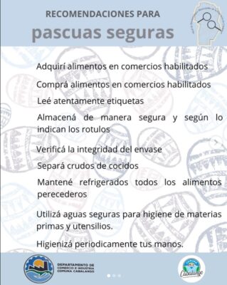 Desde el Área de Bromatología de la Comuna de Cabalango compartimos una serie de recomendaciones para una alimentación segura durante Semana Santa.