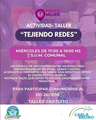 💜 Desde Punto Mujer te invitamos a participar del taller “Tejiendo Redes”, un espacio de encuentro pensado para compartir, aprender y conectar entre mujeres.