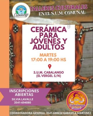 La Comuna de Cabalango informa que se encuentran abiertas las inscripciones para el Taller de Cerámica.